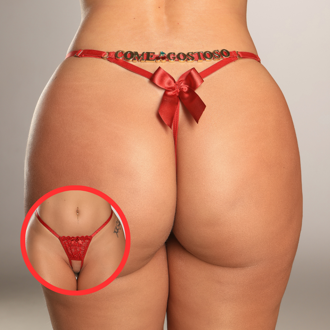 Calcinha Secretaria Presente Personalizável com 5 Letras INCLUSAS em Renda VERMELHA