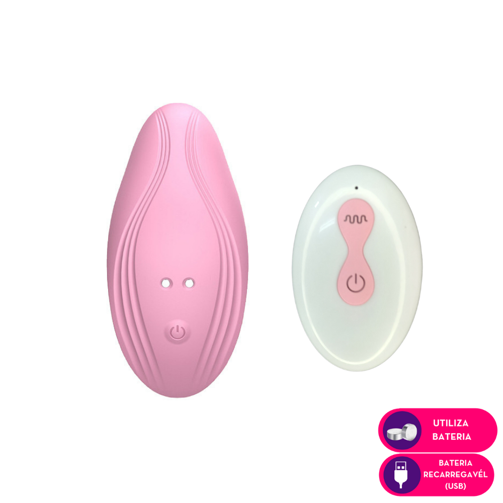 Calcinha vibratória com formato anatômico e com relevos estimuladores. Possui toque suave e controle remoto sem fio.