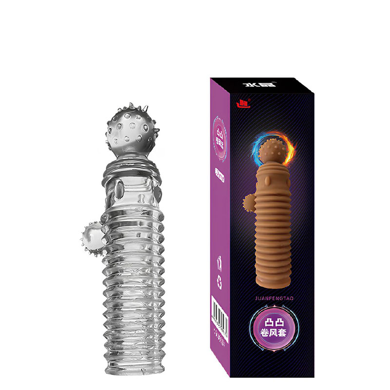 Capa peniana com saliências aneladas e esfera texturizada extensora de 2,5 cm.
