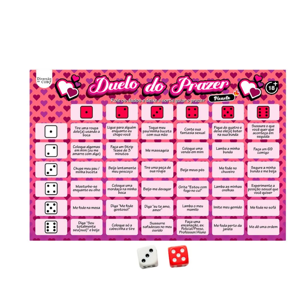 O Jogo Duelo do Prazer traz entre as 4 paredes desafios que vão tirar qualquer casal da zona de conforto e marasmo. São posições, frases, comandos e muitas brincadeiras que transformarão uma simples noite em um momento envolvente, prazeroso e bem fogoso, e claro, com muita diversão envolvida!