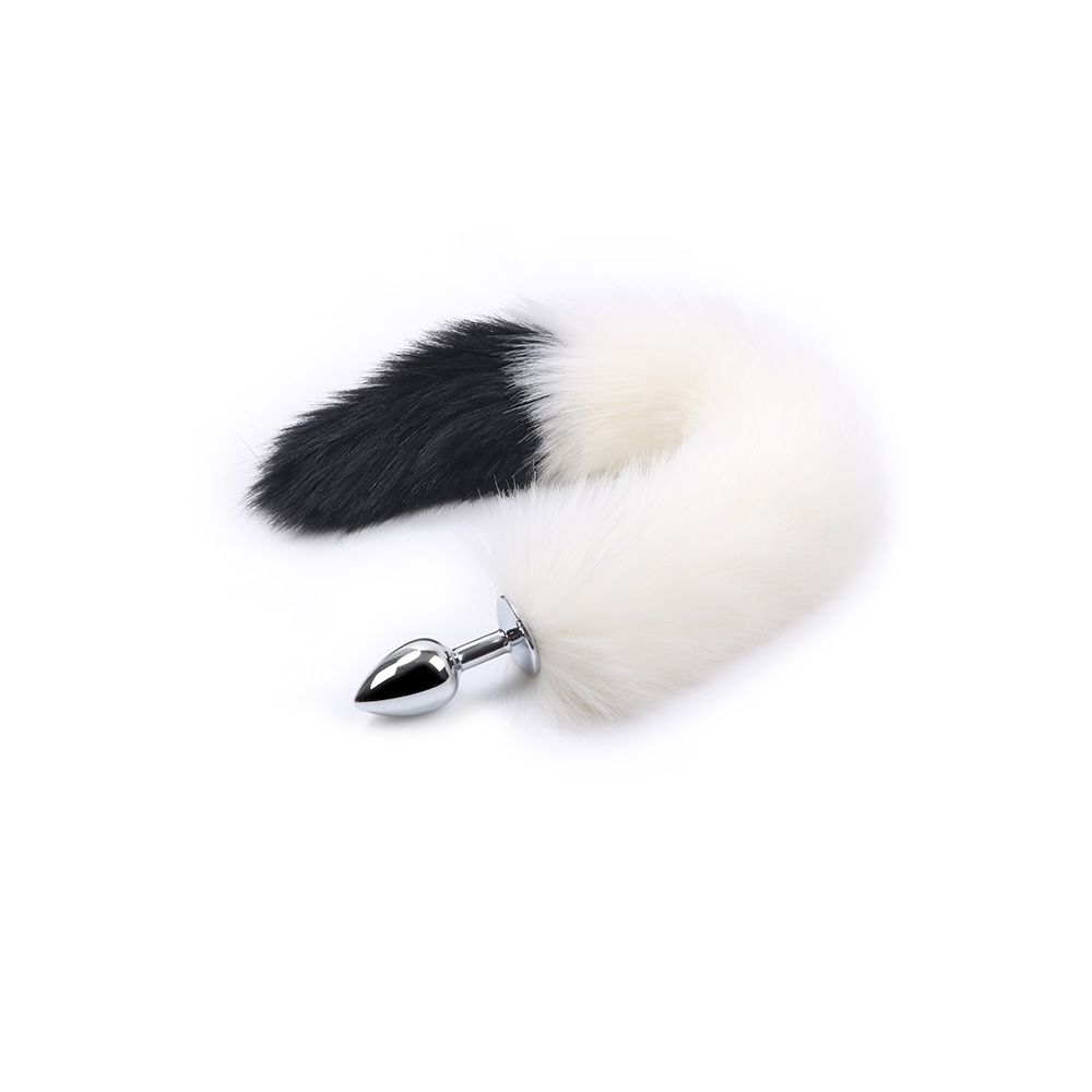 Plug Anal Bicolor com Cauda de Metal TAMANHO P - Preto com Branco